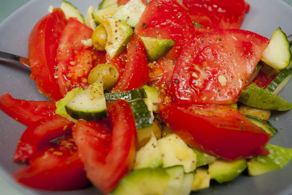 Fresh vegetable salad with oil.